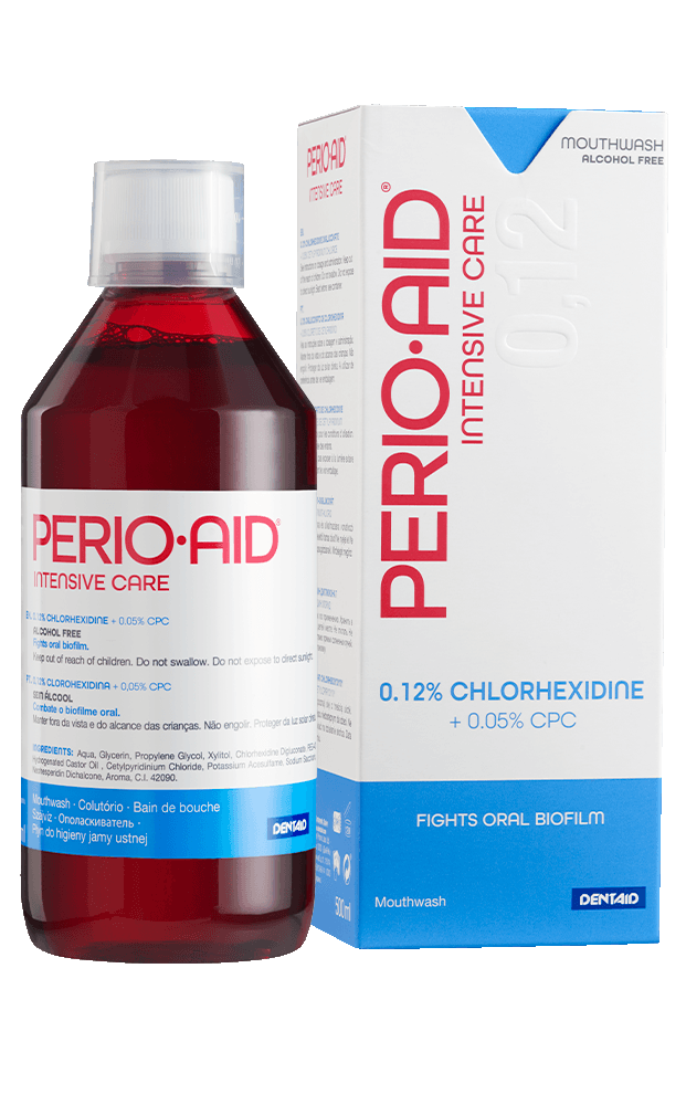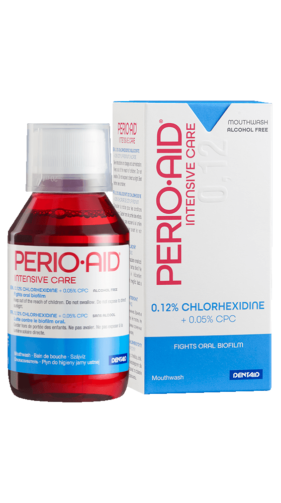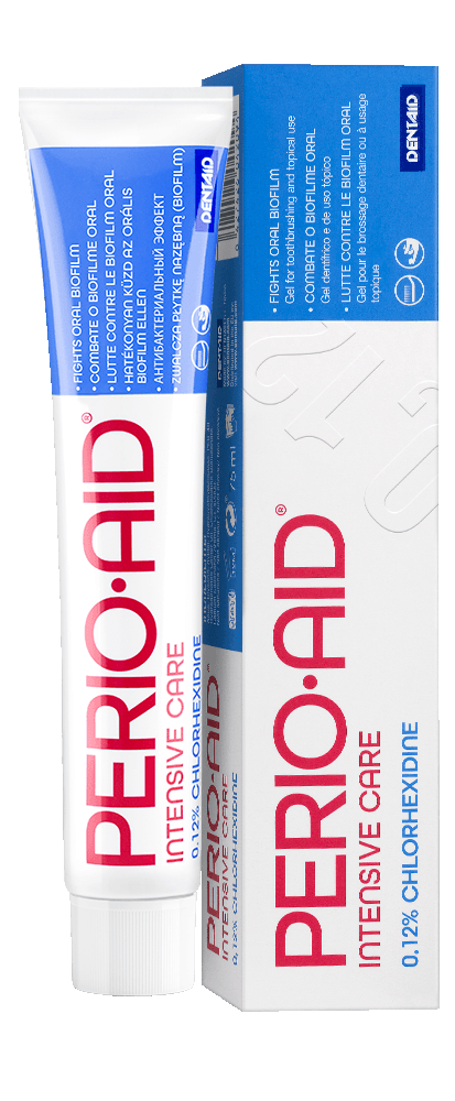 Засоби PERIO-AID борються з хвороботворною мікрофлорою ротової порожнини, допомагають у лікуванні захворювань ясен, рекомендуються для використання в стоматологічних клініках перед кожною стоматологічною процедурою для санації порожнини рота. Містять хлоргексидин. Тривалість курсу застосування засобів з хлоргексидином визначає лікар-стоматолог.