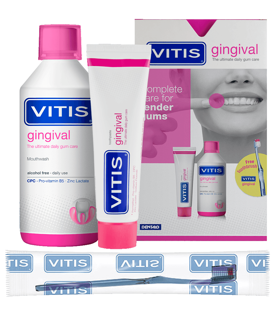 VITIS GINGIVAL – засоби, створені для покращення гігієни порожнини рота людей з делікатними чутливими яснами. Регулярне щоденне використання VITIS GINGIVAL зменшує утворення бактеріального зубного нальоту, захищає та відновлює ясна, запобігає розвитку карієсу.