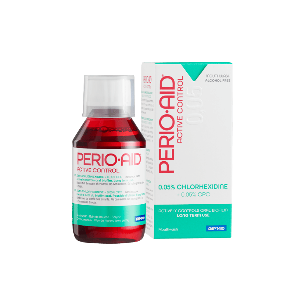 PERIO-AID ACTIVE CONTROL (ПЕРІО-ЕЙД ЕКТІВ КОНТРОЛ) – ополіскувач для ротової порожнини зі вмістом 0.05% хлоргексидину та 0.05% хлориду цетилпіридину, рекомендується як допоміжний засіб у лікуванні захворювань ясен або тканин навколо дентальних імплантатів. Низька концентрація хлоргексидину дозволяє використовувати PERIO-AID ACTIVE CONTROL щоденно протягом тривалого періоду.