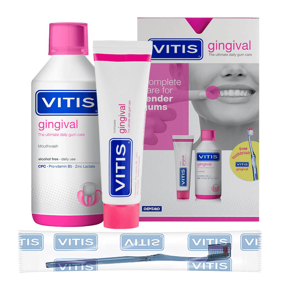 Зубна паста та ополіскувач VITIS GINGIVAL (ВІТІС ГІНГІВАЛ) дозволяють ретельно видалити зубний бактеріальний наліт, допомагають яснам відновлюватися і ставати міцнішими та здоровішими. Запобігають виникненню захворювань ясен та карієсу. Призначені для щоденного застосування.